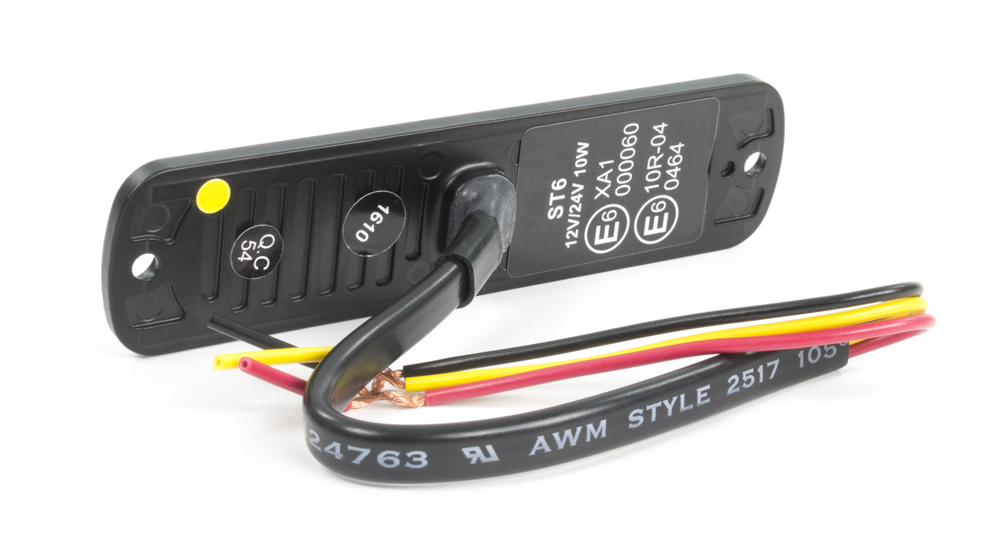 Product code 02160054 Product Name ST6 R65 Class 1 (Horizontal) - AC Categories Warning Lamps, Super Thin, Directionals, ST6, Modules Product Type Products Dimensions Length 112mm (4.4") Dimensions Height 28mm (1.10") Dimensions Width 9mm (0.35") Bezel Colour Black Colour Type Single Colour Maximum Current 1A@12VDC / 0.5A@24VDC Storage Temperature -40°C - +75°C Operating Temperature -30°C~+65°C Maximum Power 10W Synchronisation 15 Unit Sync LED Colour Amber LEDs Fuse Rating 2A Lens Colour Clear Lens Compliance ECE-R10, ECE-R65 (XA1), SAE J595 Class 1 Input Voltage 12VDC~24VDC Optic Type T.I.R Optics Mounting Option Surface Mount Cable Type Cable (Pigtail) LED Quantity 6x LEDs IP Rating IPX7 Flash Patterns 23 Flash Patterns Wire Length 250mm Mounting Orientation Horizontal Gross Weight 0.05kg Conductor Cross-Section 0.5mm² (20AWG) Warranty 5 Year Warranty -